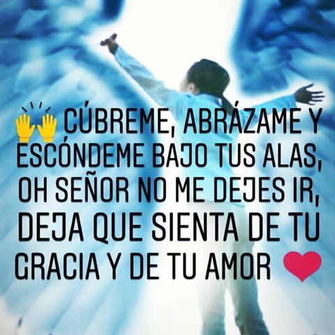 Señor, cúbreme, abrázame y escóndeme bajos tus alas. Necesito sentir que estas aquí, que me cubres con todo tu amor, que aunque todo se vea oscuro y difícil, saber que estás conmigo y que no hay nada contra mi. No quiero sentir tristeza ni miedo, quiero sentirme seguro pero porque siento tus brazos alrededor de mi protegiéndome.