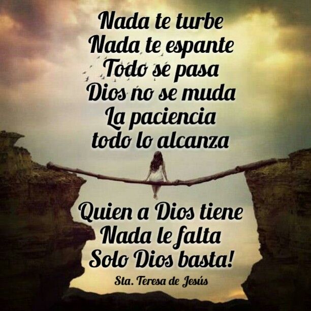 Nada te turbe, Nada te espante, Todo se pasa, Dios no se muda. (Santa Teresa de Avila)