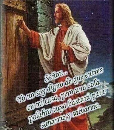 Durante celebración Eucarística, este es una de las frases que todos repetimos, que más me llega al corazón y que cuando sale de mi boca lo digo con gran sentimiento: Señor no soy digna de que entres en mi casa (ósea mi corazón, mi vida) pero una palabra tuya bastara para sanarme (para levantarme, liberarme) con tu llamado, con tu palabra.