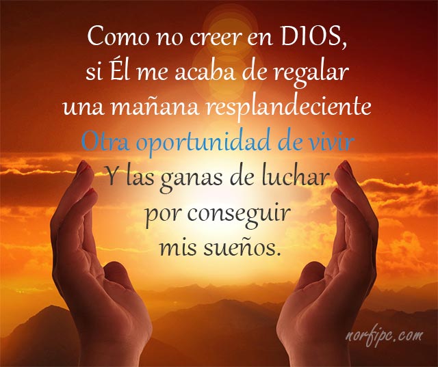 No sé en este momento cuáles son tus proyectos, tus deseos, si tienes algo que te está inquietando o simplemente algo no te salió como tu esperabas, o te sientes desanimado(a)…no sé. Quizás a esto le ha llamado un FRACASO….nooo!!!! no ha sido un fracaso, ha sido el señor que ha considerado que tiene algo mejor para ti, que está preparando el camino, tu vida para enviarte una gran bendición. Hoy, en este instante, en esta linda mañana venimos ante ti señor sedientos de ti, de tu bondad, de tu amor, de tu protección. Mira señor los deseos de mi corazón, las cosas que tengo en mi mente….tú lo conoces todo Padre Amado, pon las cosas en Orden Divino, dame claridad y discernimiento para hacer lo que debo hacer, para tomar las decisiones correctas.