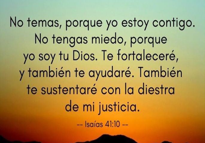 Sé que muchos hemos escuchado esta cita bíblica en Isaías 41:10, que nos habla de no tener miedo, de saber que el Señor siempre está con nosotros en cada momento, que nos da las fuerzas que necesitamos, que nos ayuda, nos sostiene, que nos envía a su Santo Espíritu para que nos asista. Apóyate en la palabra, hazla viva en ti y vamos a creer en esas promesas del Señor, de que siempre, en todo momento está con nosotros. Amen.